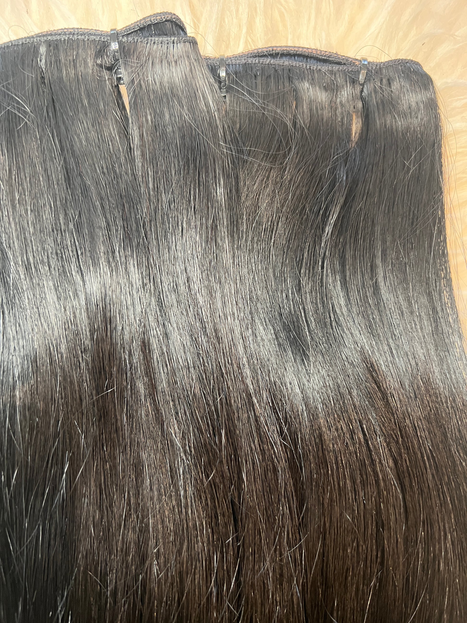 Amazingly high quality! Soft with medium to high luster. Jet black color. Donors dyed their hair jet black before donation. Beautiful, healthy hair, ethically sourced directly from Cambodia!