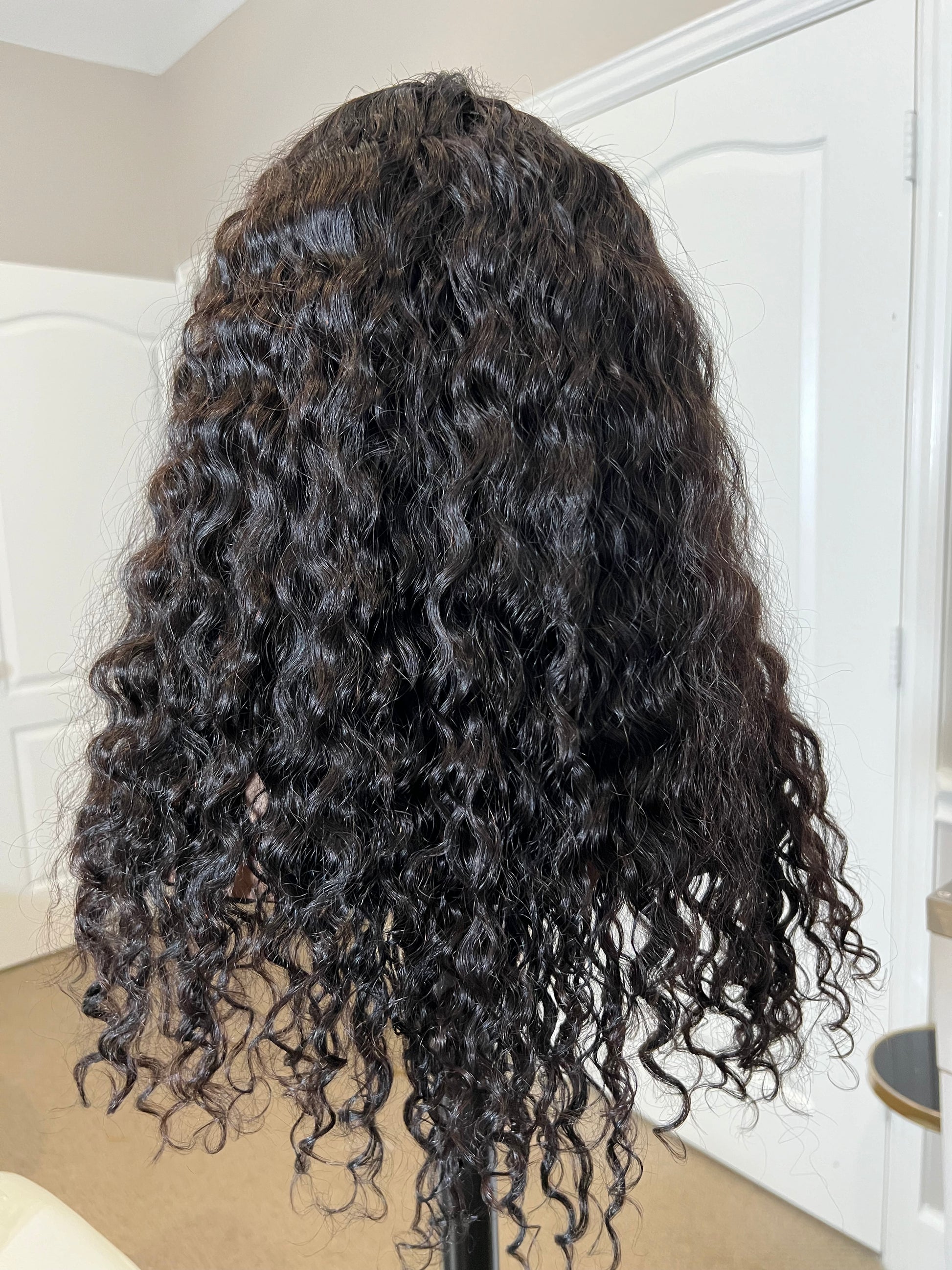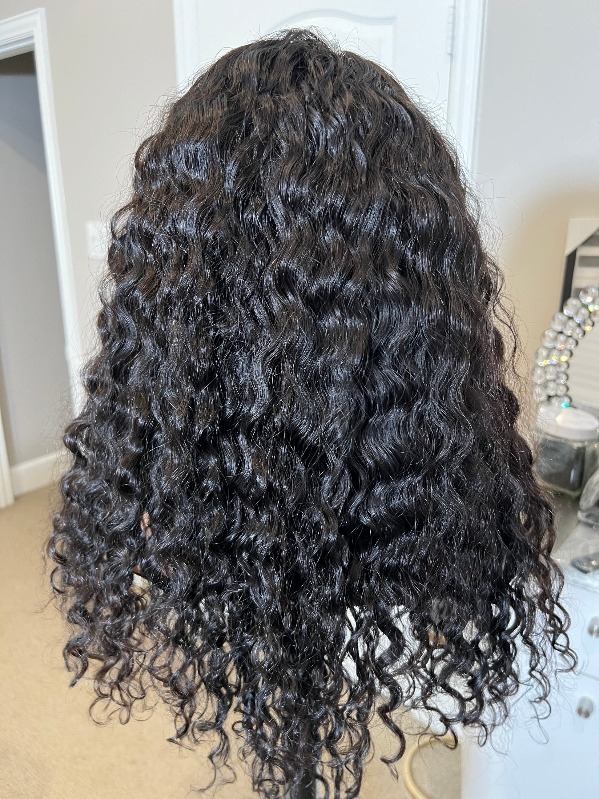 100% glueless girls! FULL 200% density with LOTS of Spanish curly hair! She’s amazing with 5x5 HD lace with fully bleached knots and adjustable glueless band. There’s also silicone grip around the ventilated wig cap to ensure a secure fit and effortless wig.. just wet it and forget it! She looks amazing wet or dry!
