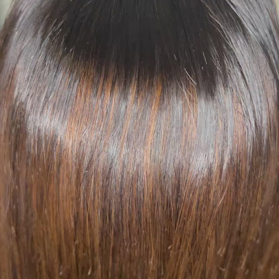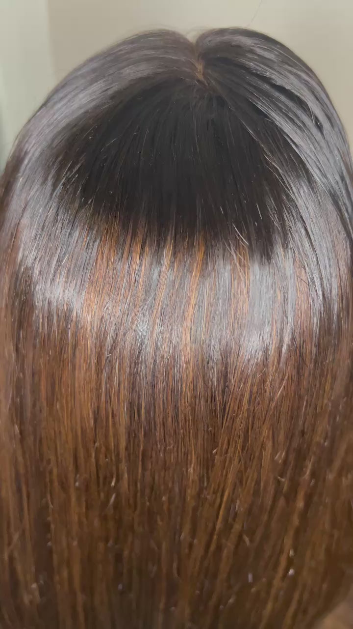 This is a 24” 5x5 HD lace closure 200% density glueless wig with chocolate espresso highlights! Amazing top quality virgin straight hair that’s full from root to tip!