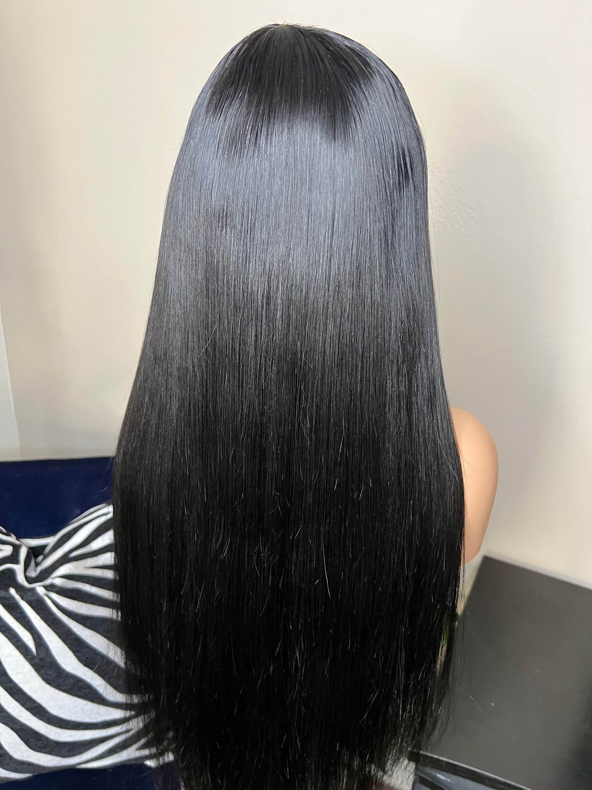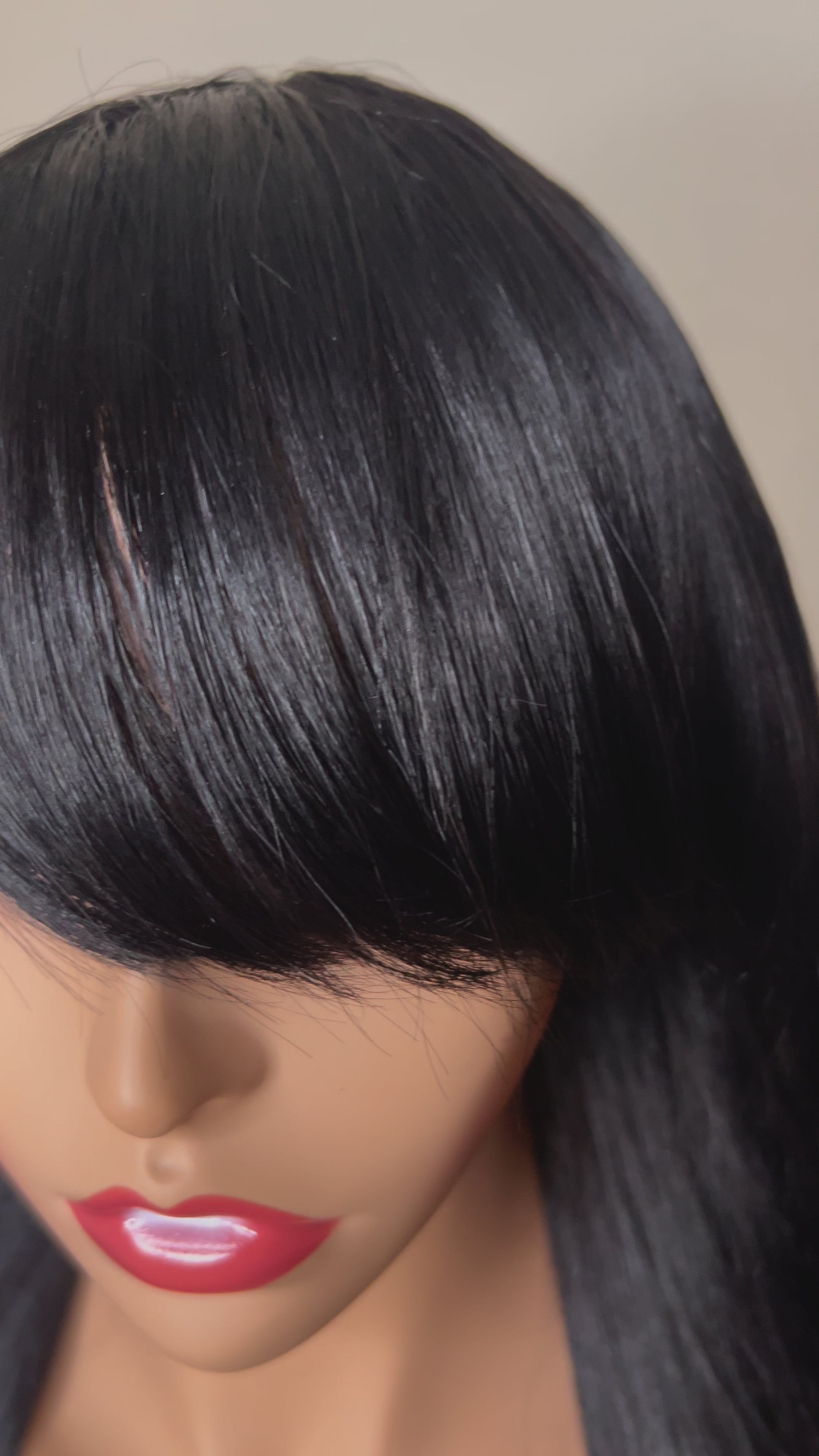 She’s super stylish made with 24” jet black virgin hair. Constructed on a stretchy and breathable mesh dome cap for comfort and ease of wear! This bang wig doesn’t have any lace so it’s easy to put on and go! Perfect for the busy professional who wants to look her best with little effort!