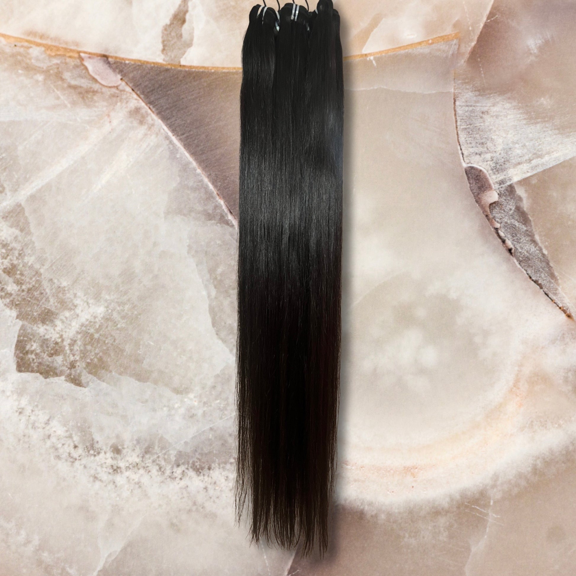 Amazingly high quality and FULL bundles! Extremely hard to find this long and this healthy! Soft with medium luster. Natural black/brown color. Raw one donor per bundle of healthy hair! You need at least 4-5 bundles for a luxuriously full look!