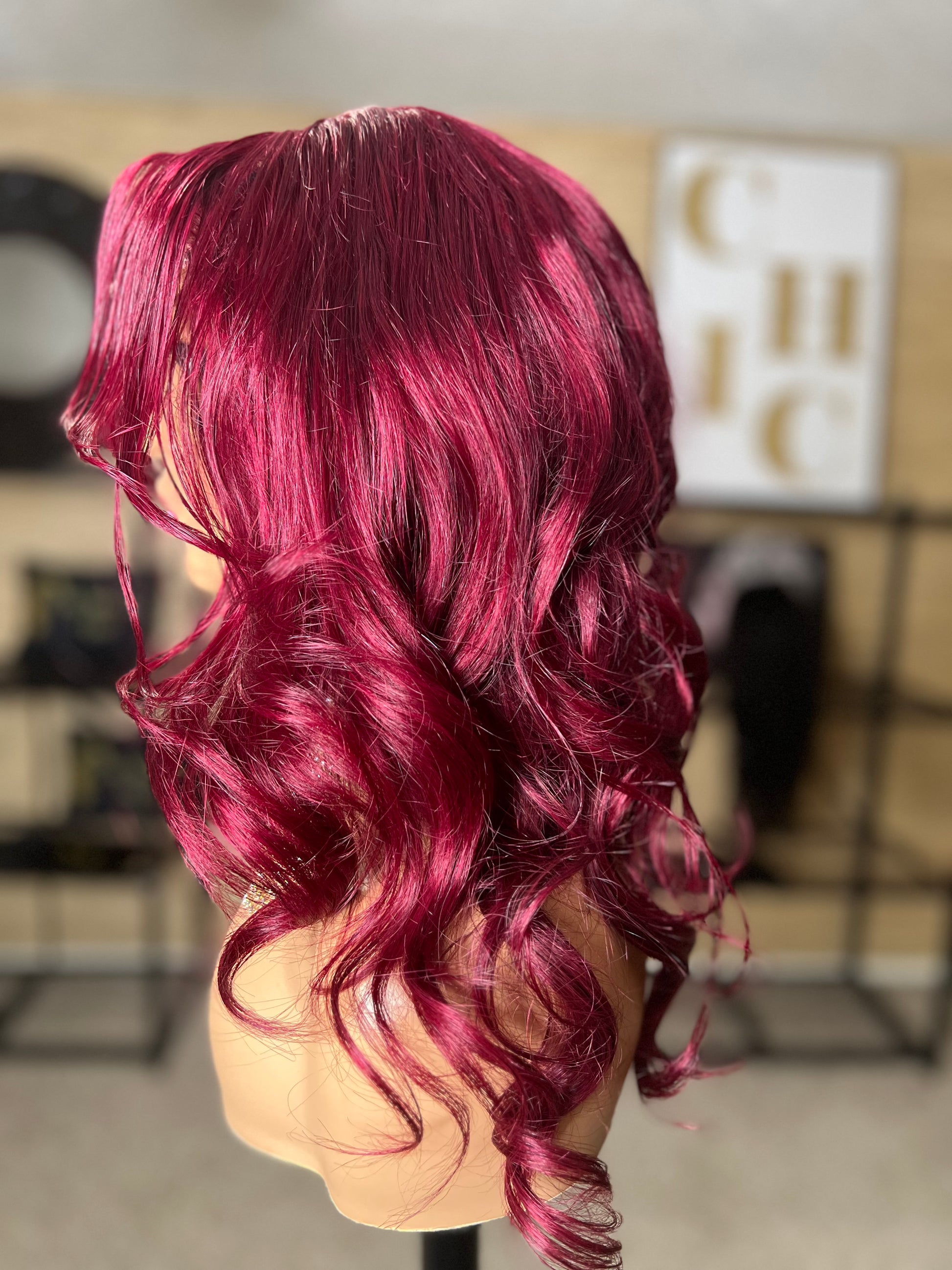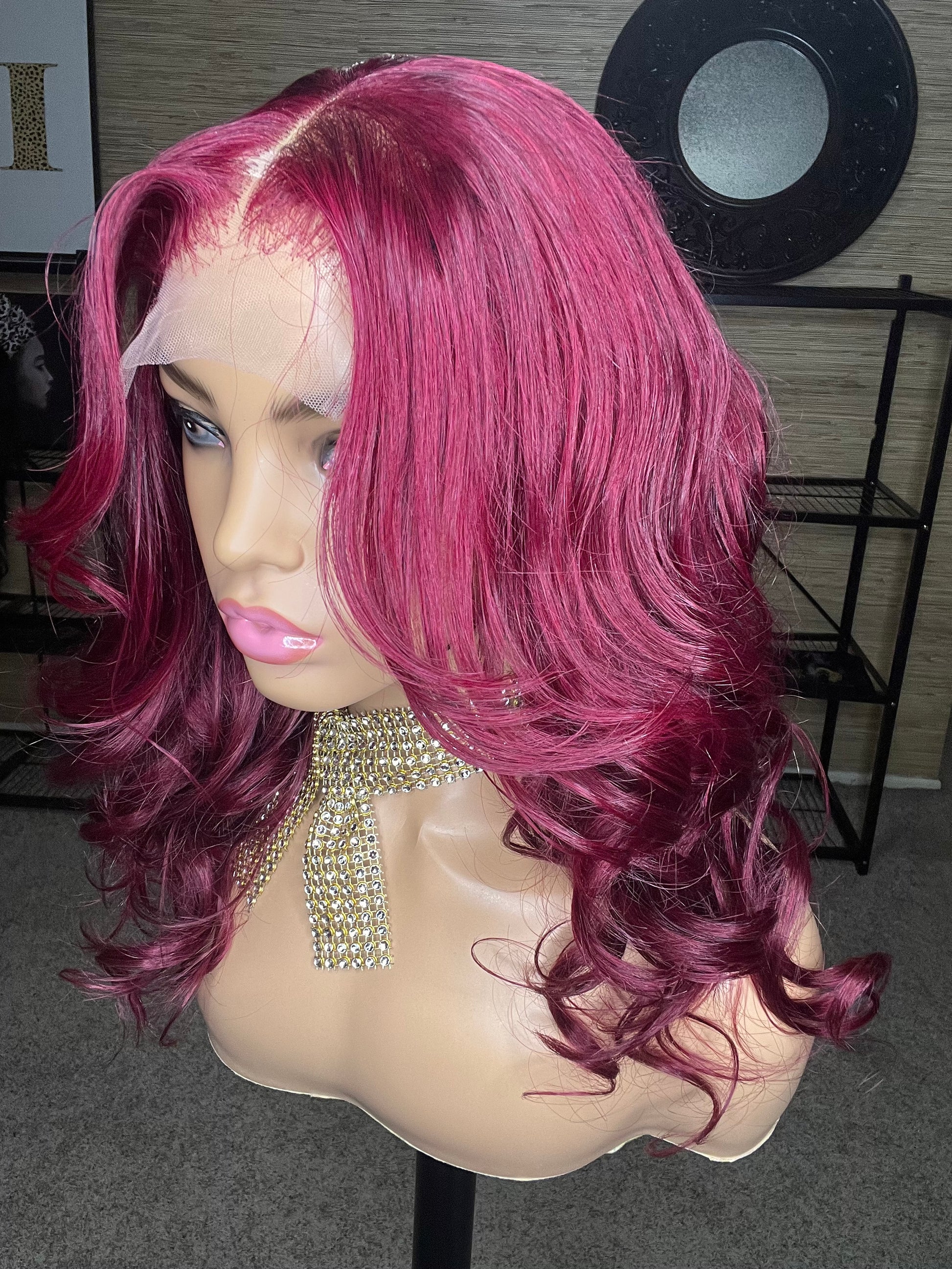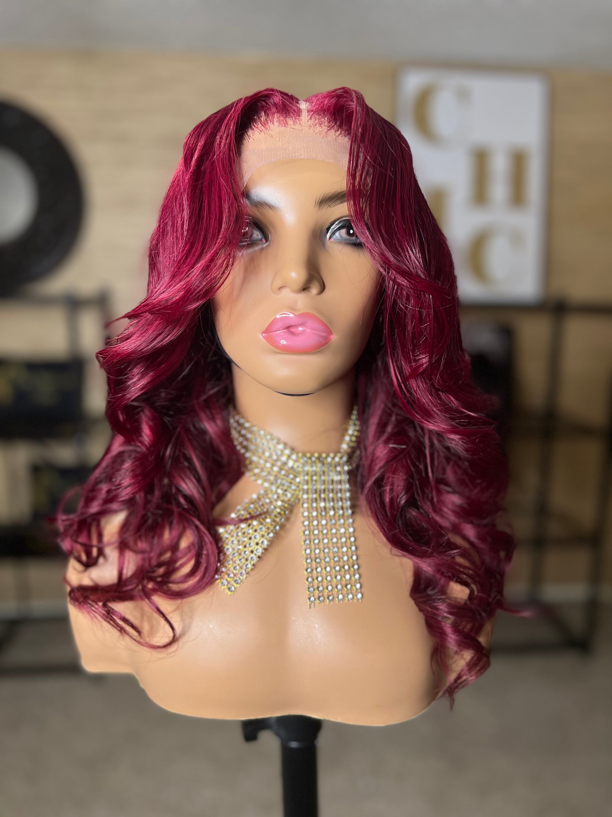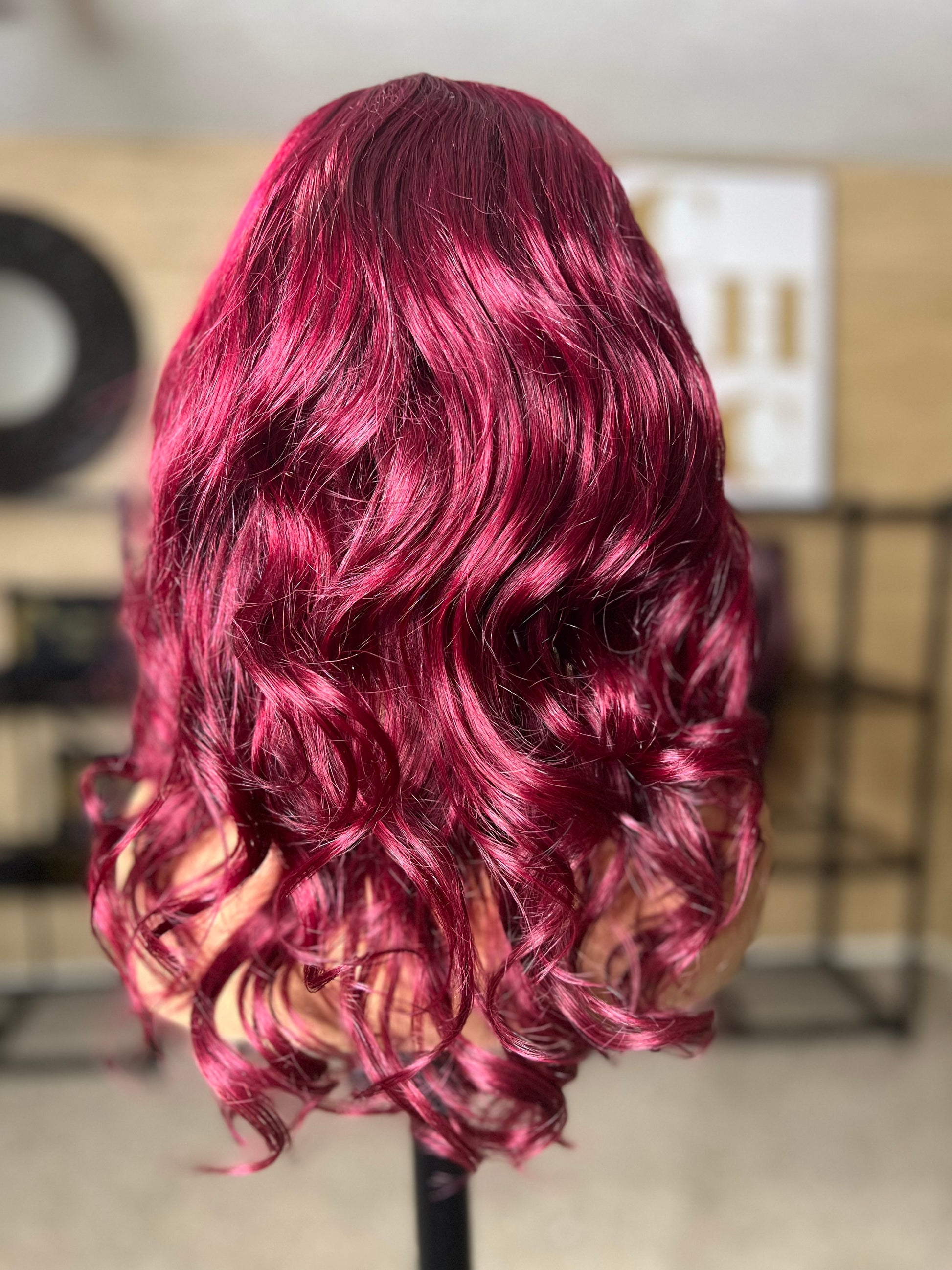 20-22” of virgin hair on this burgundy red wig! She’s layered and features beautiful curtain bangs! You can style them more in your face or push them back and she will still look fab! This is a glueless wig with a 4x4” transparent closure. She’s super easy to wear and comes fully ready to SLAY!