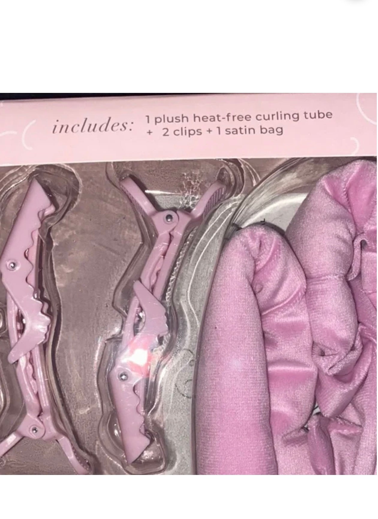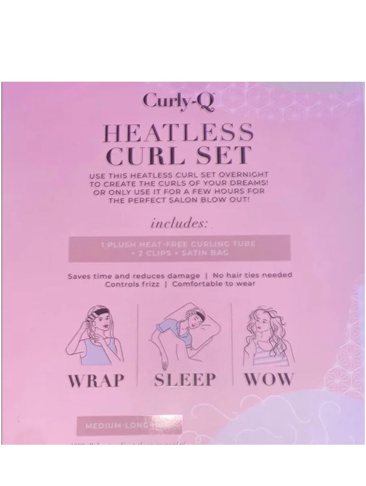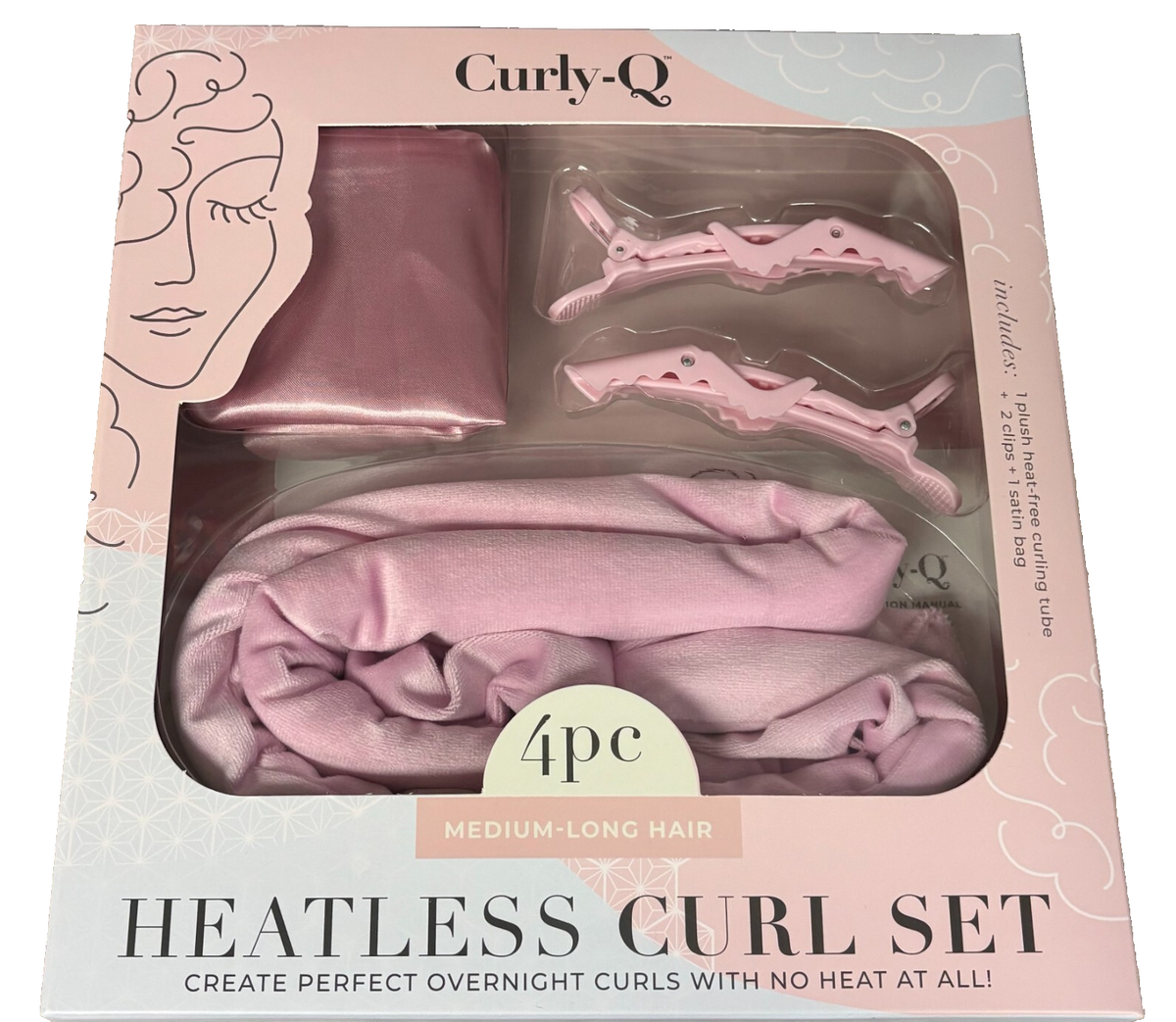 Experience the ease of creating beautiful curls without the need for heat with the Curly Q Heatless Curl Set. This 4-piece set includes a plush heat-free curling tube with 2 alligator clips and a satin storage bag. Instructions are also included to help ensure a secure and seamless styling process.