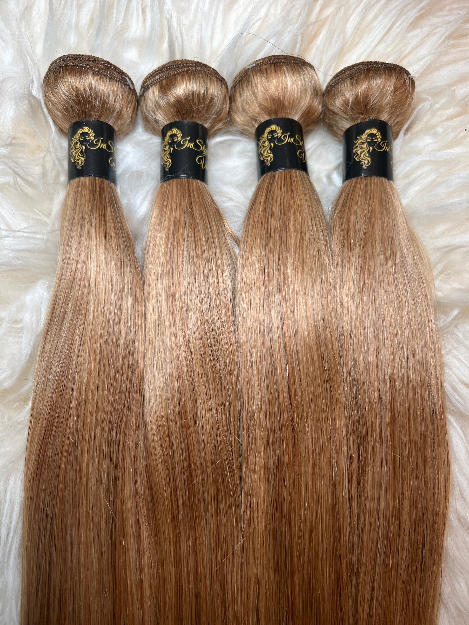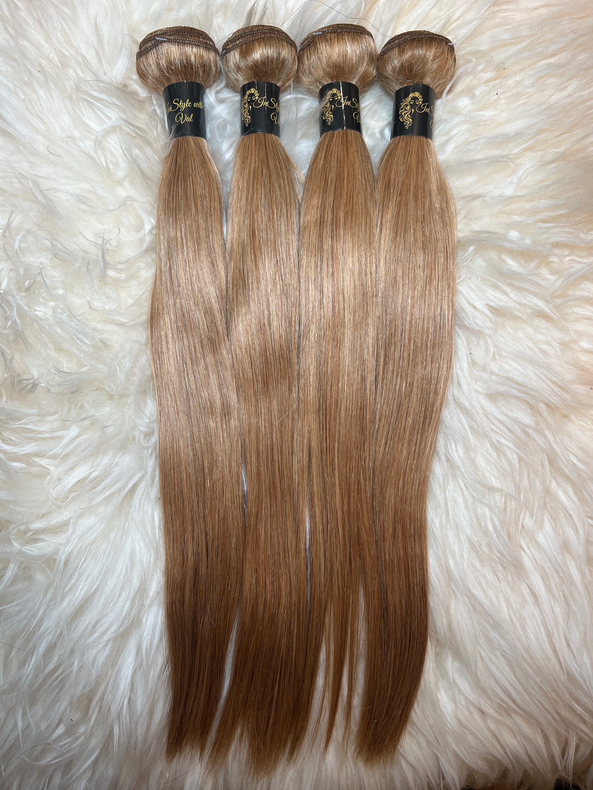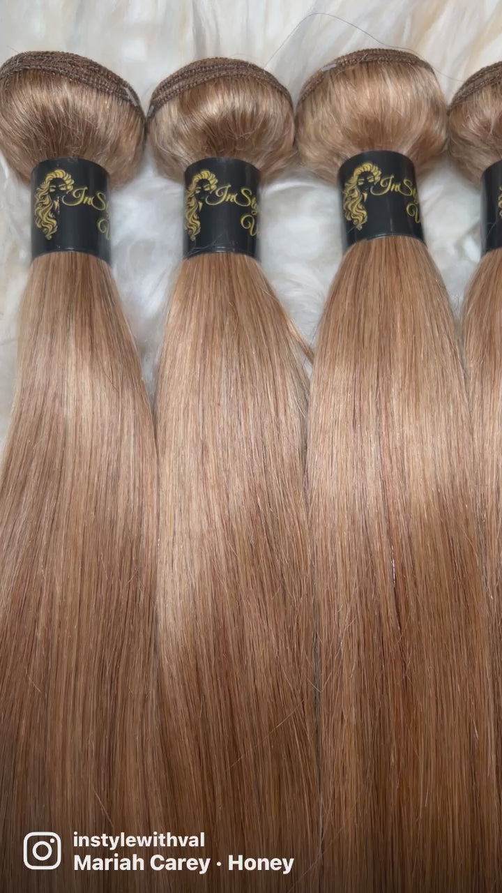 Full bundles with golden honey tones. Hair wefts are doubled and reinforced to minimize shedding. Great bundles at a fabulously low price for temporary sew-ins, quick weaves and bonded looks.