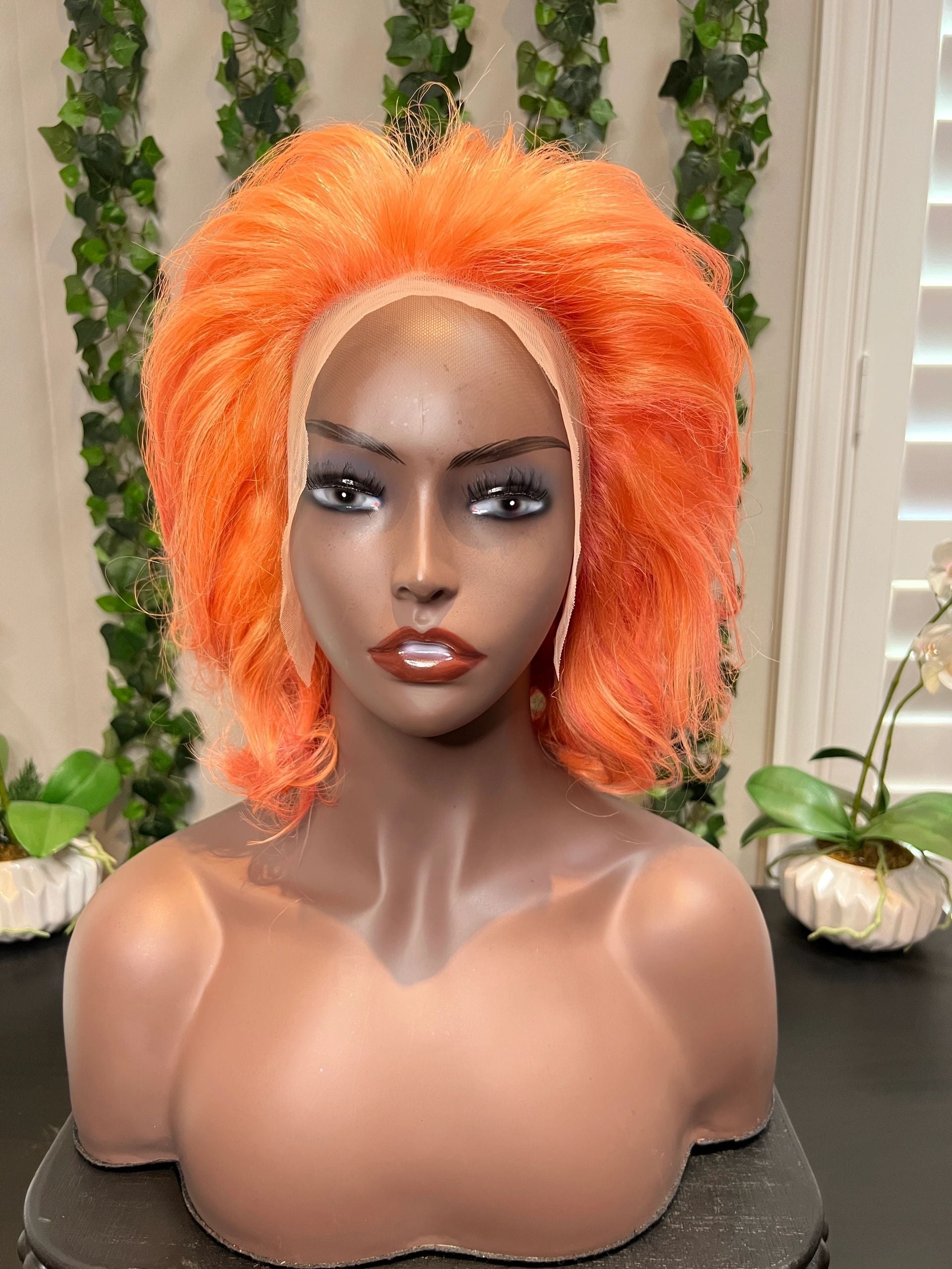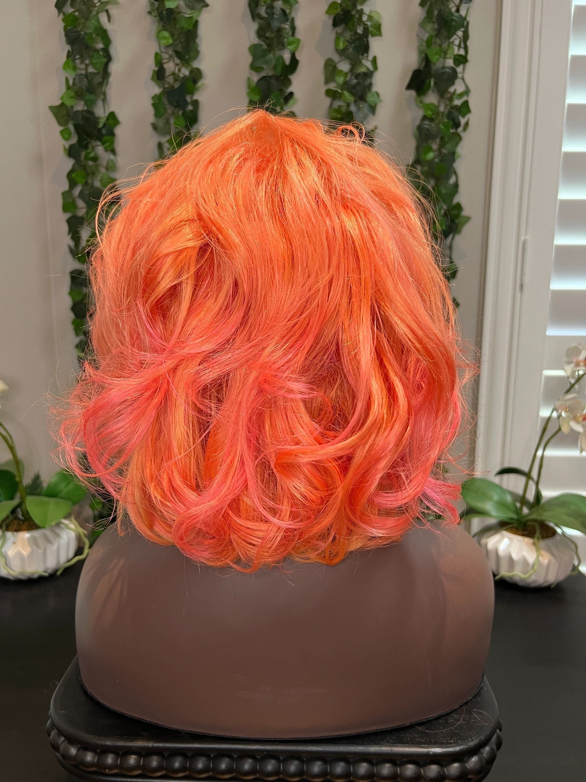 - 10” Peach w/ Pink highlights 13x4 transparent frontal wig 180% density