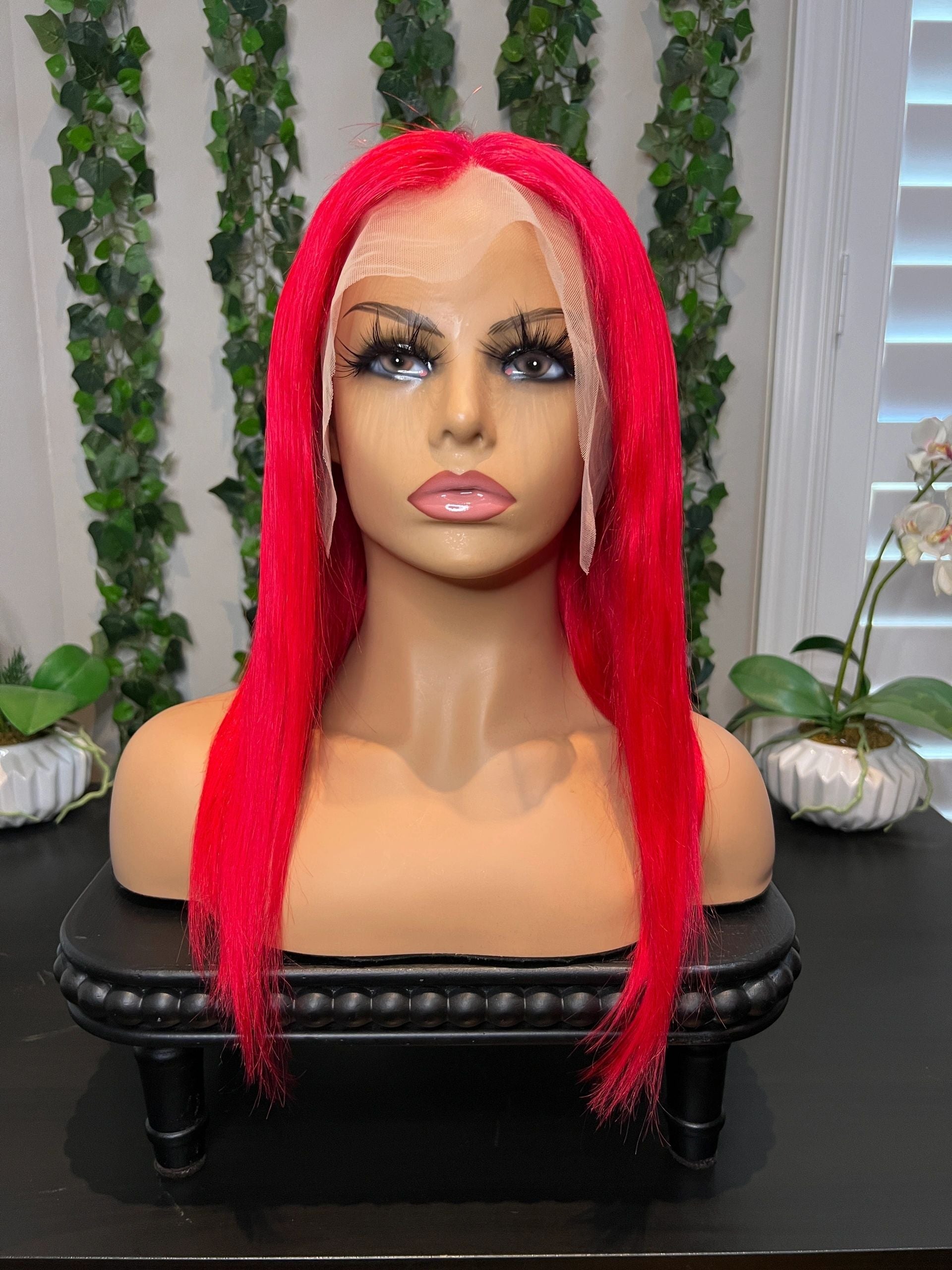 - 14” Electric Red 13x4 transparent frontal wig 180% density