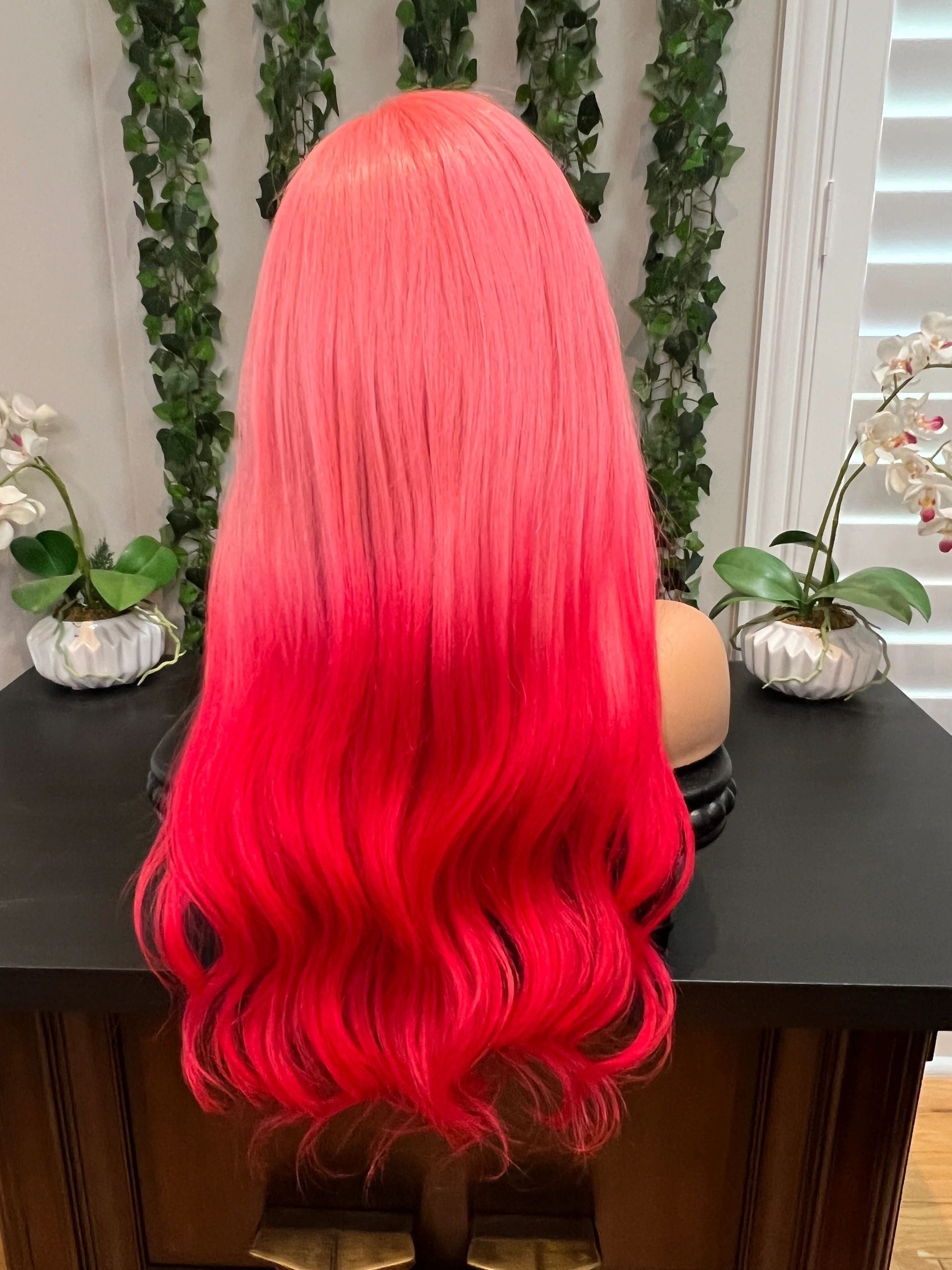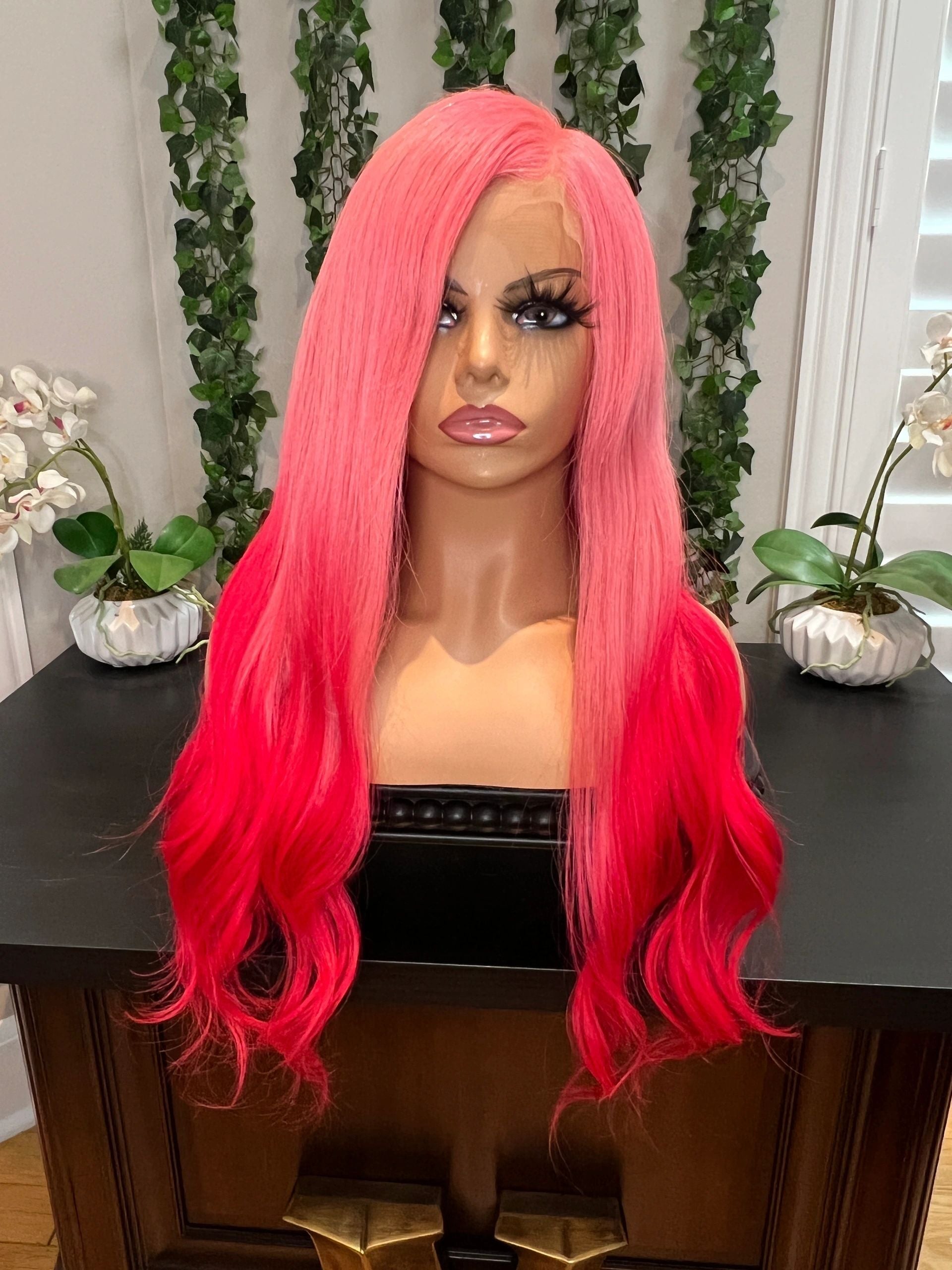 - 20” Baby Pink to Magenta Ombré transparent FULL LACE wig 180% density
