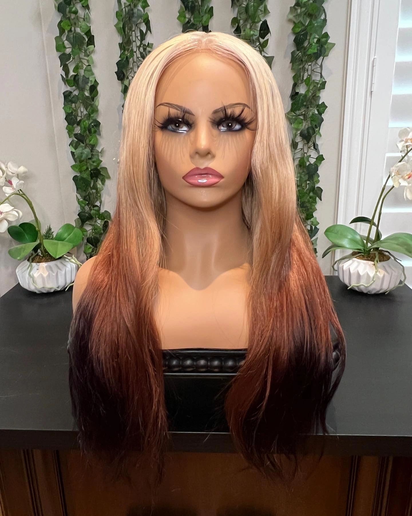 - 22” Reverse Ombré 13x4 transparent lace frontal wig 180% density