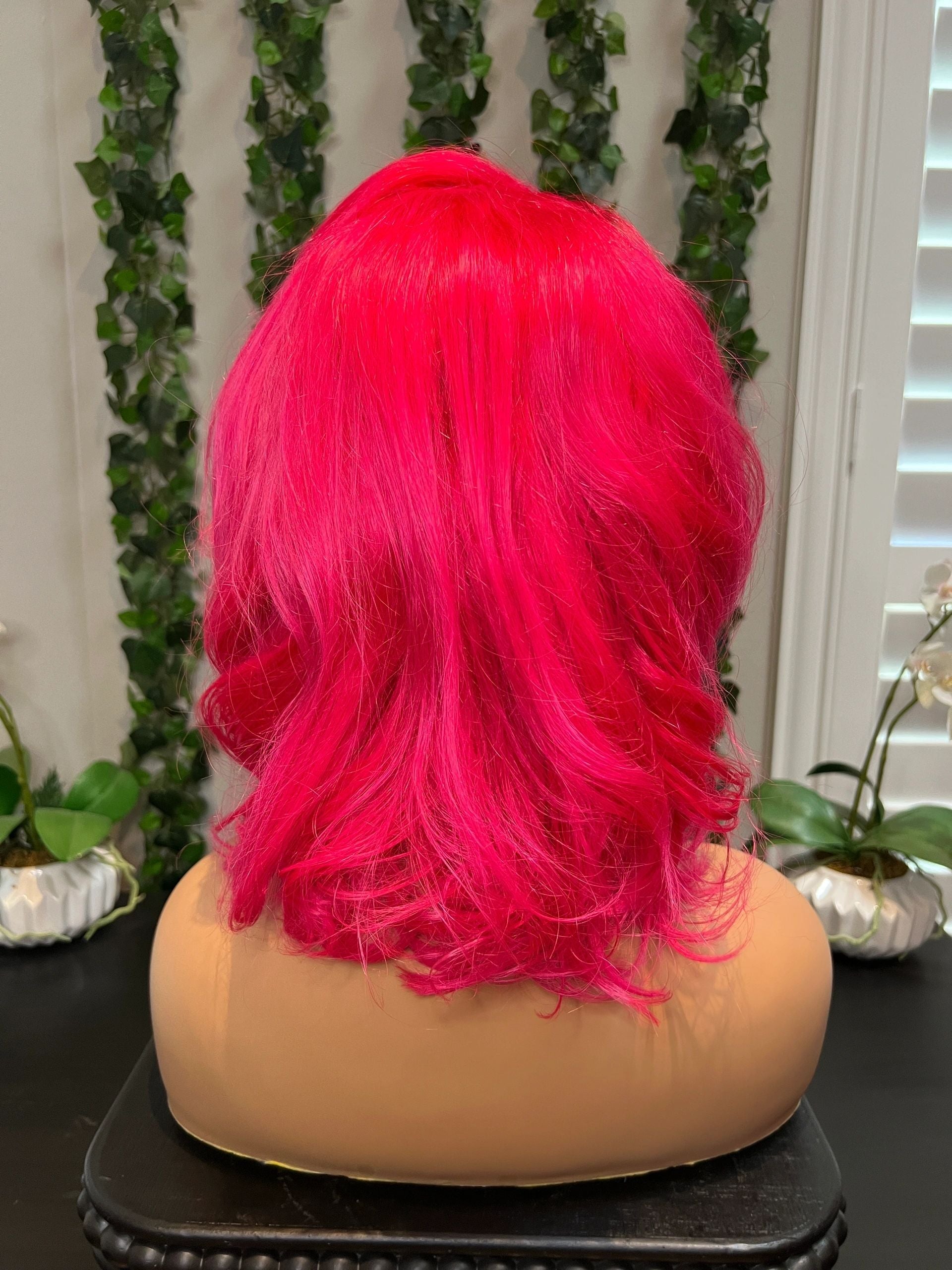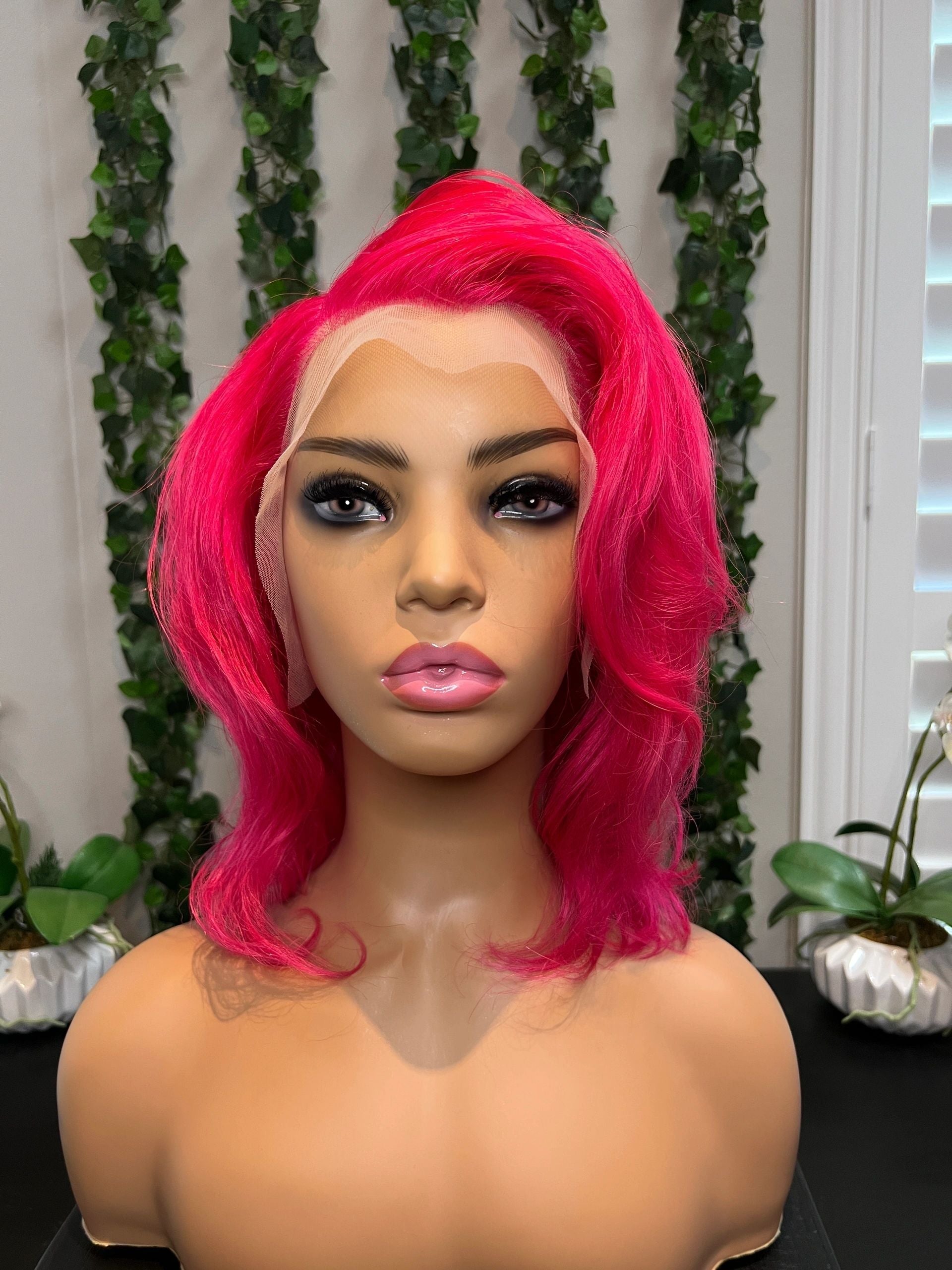 - 12” Hot Pink/Magenta 13x4 transparent frontal wig 180% density