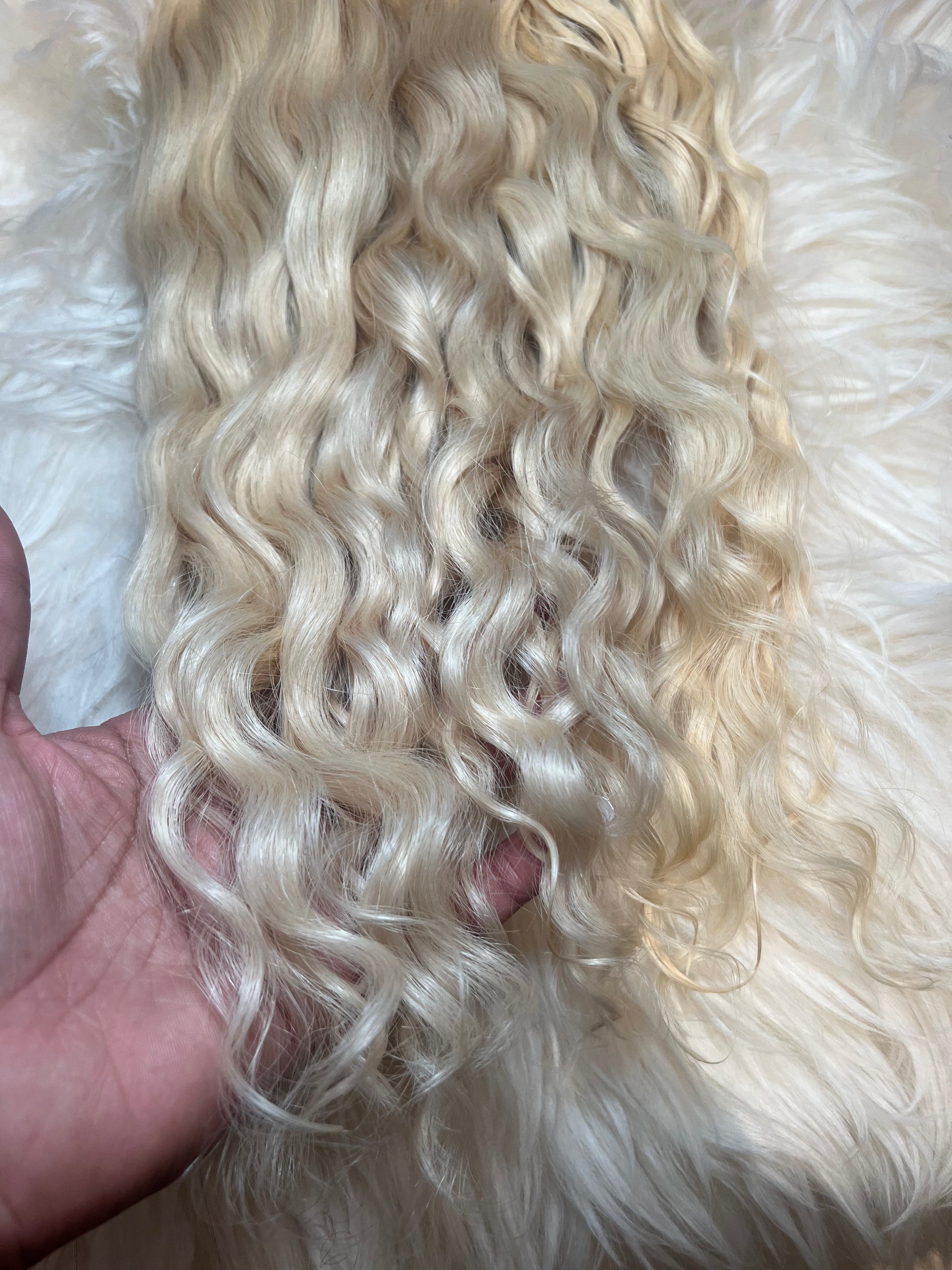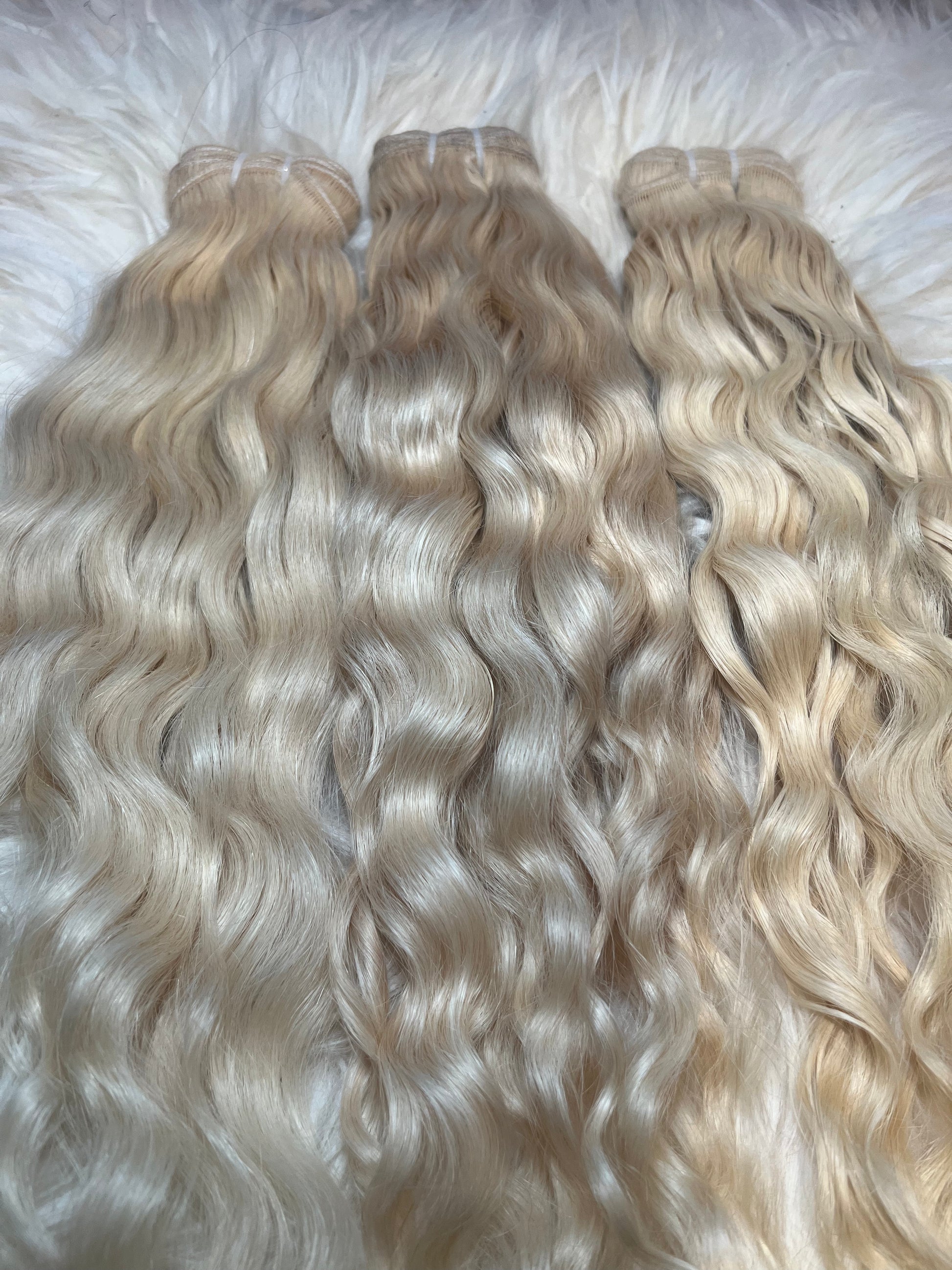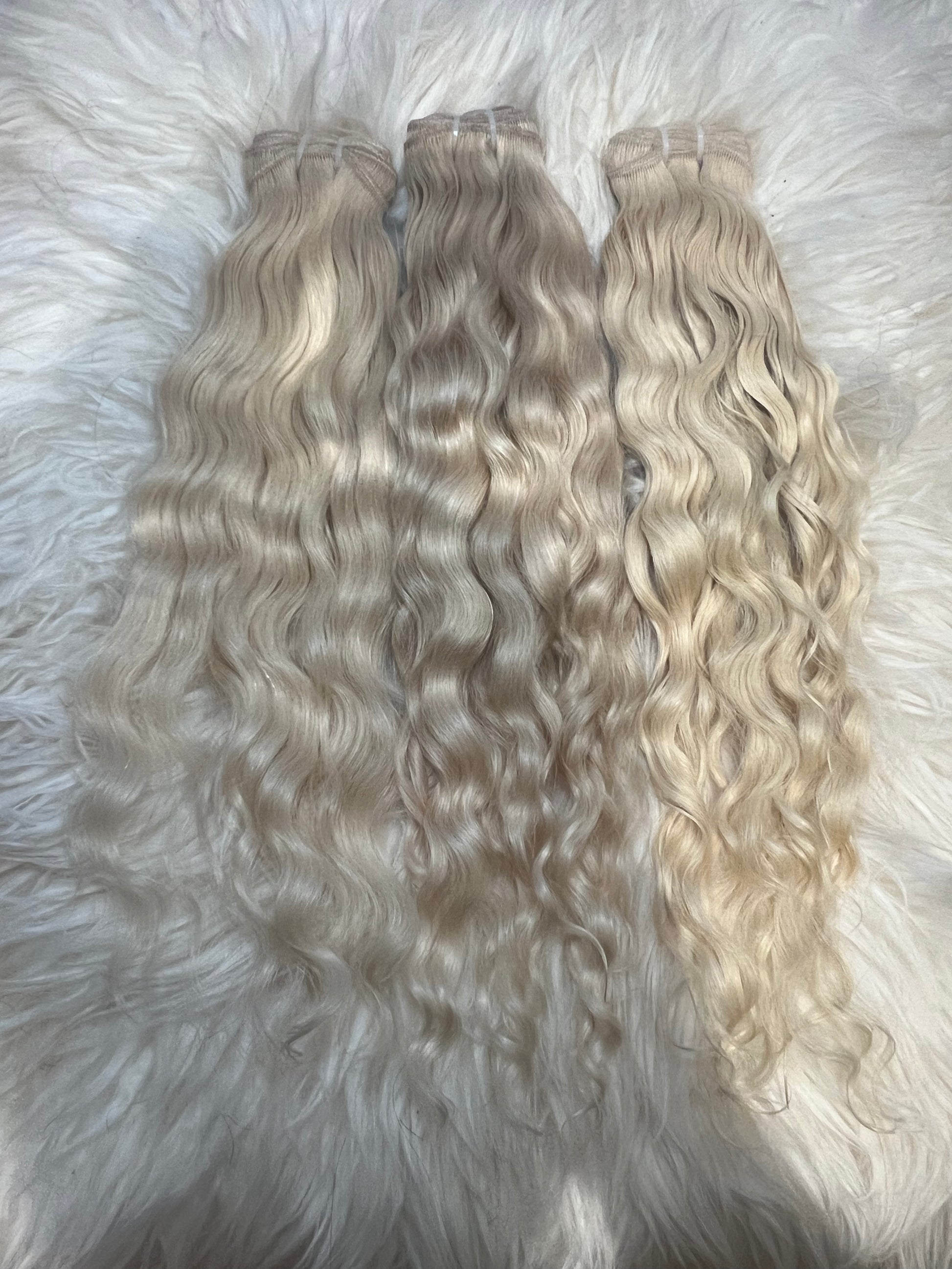 The ultimate in luxury hair! Raw Indian blonde curly bundles with matching frontals and closures!
