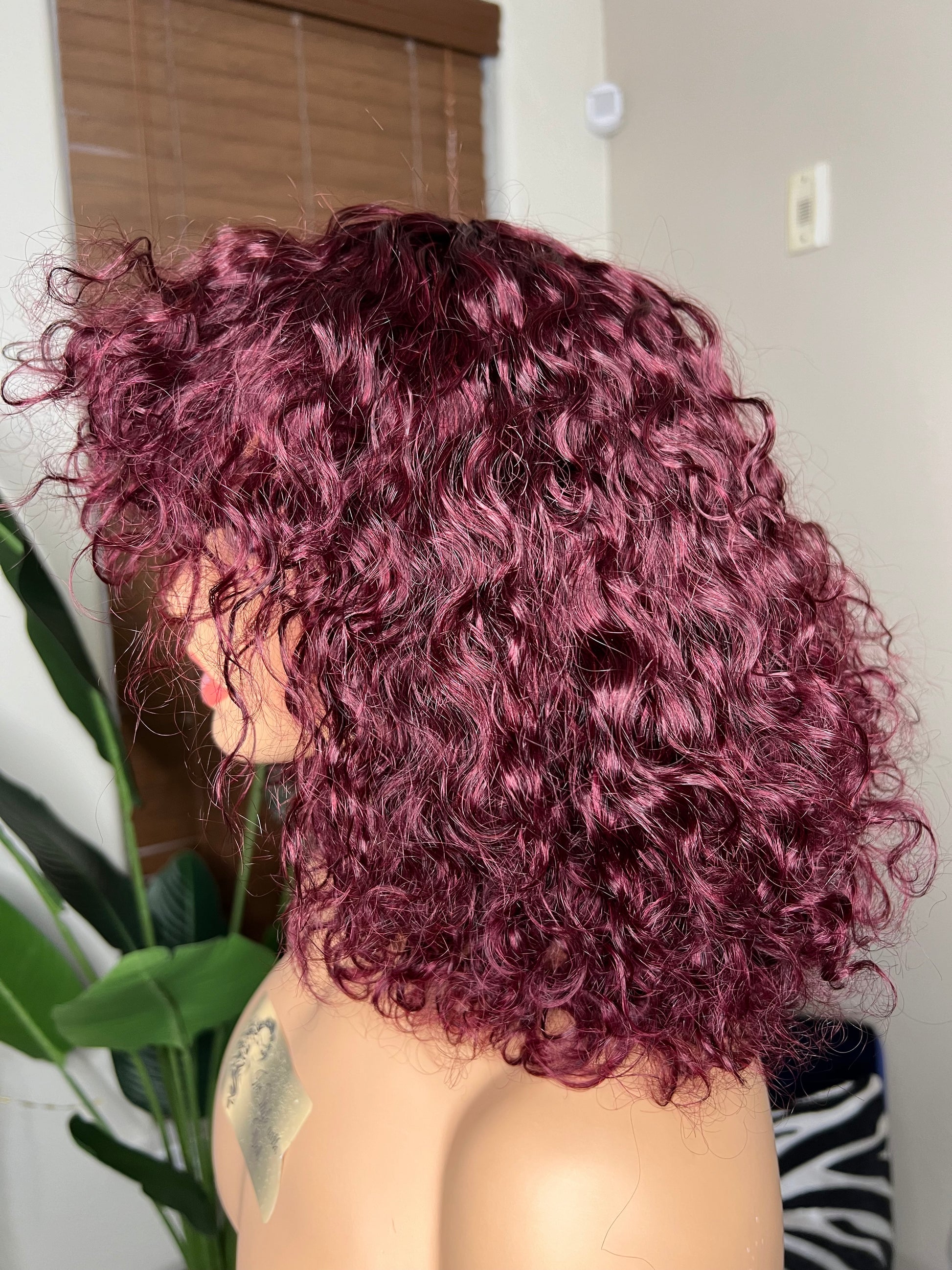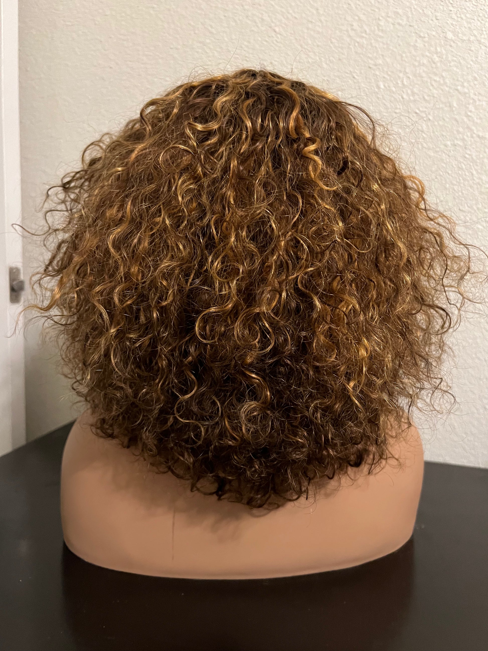 12” water wave/curly wig that’s nice and full! No lace and easy to wear with beautiful bangs! Fluff her up for a high volume look or leave her loose for a more casual natural look! Versatile and super easy care! Effortlessly beautiful!