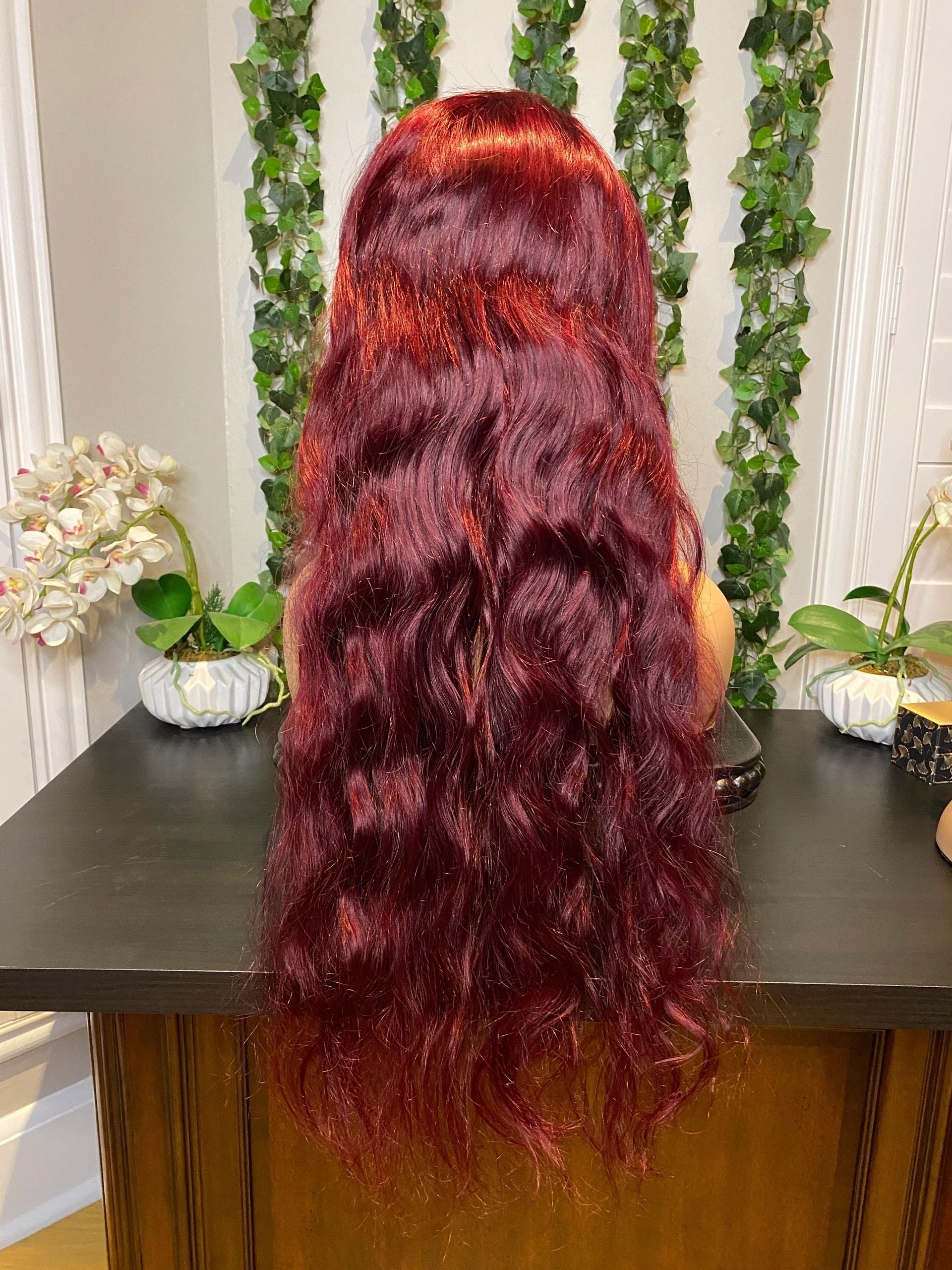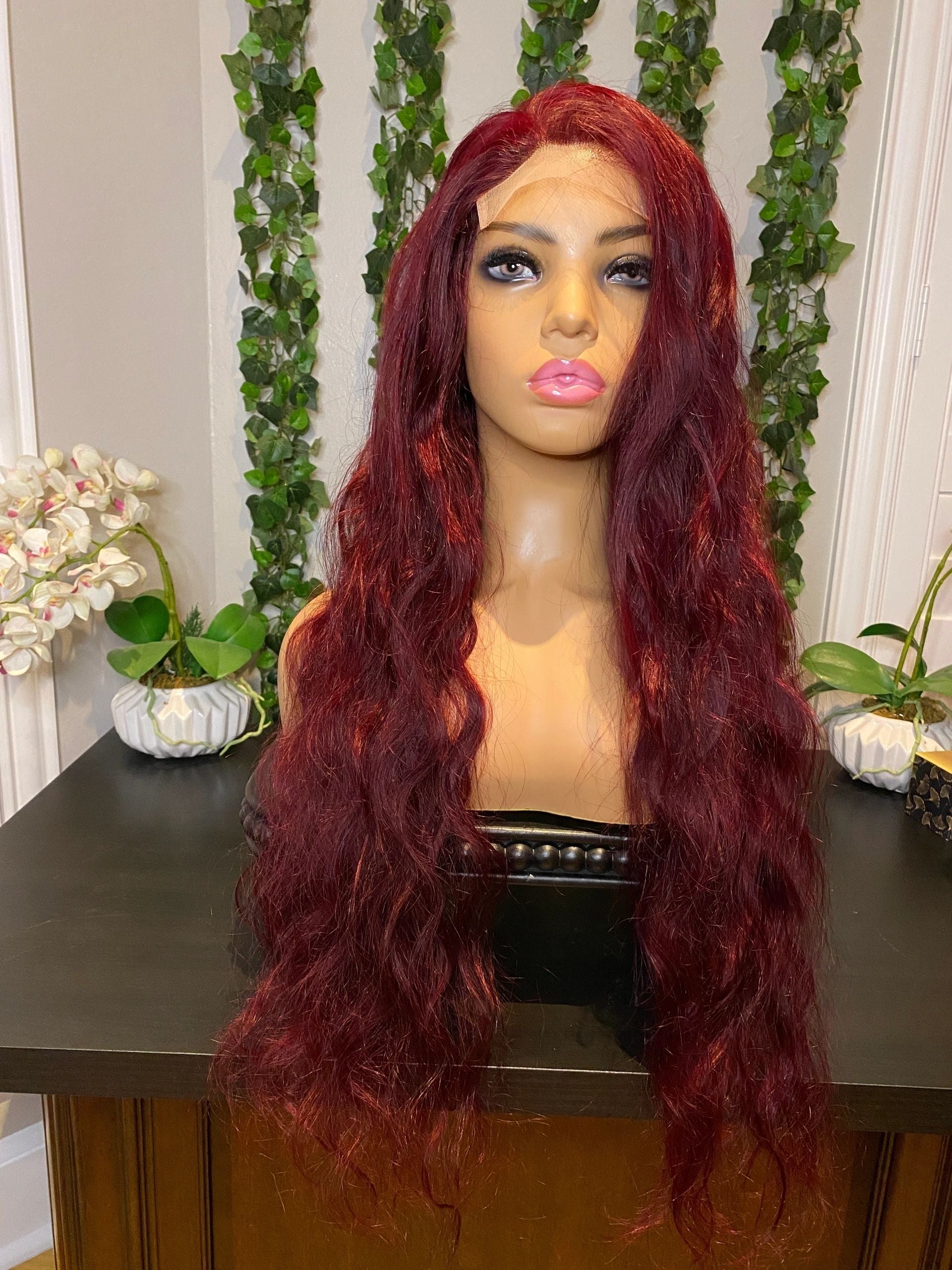 - 28” 5x5 transparent lace body wave burgundy top quality virgin hair 180% density