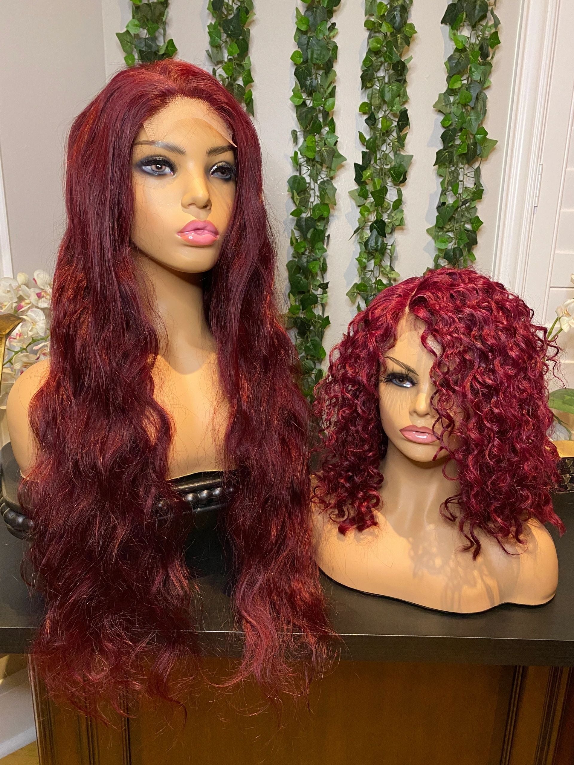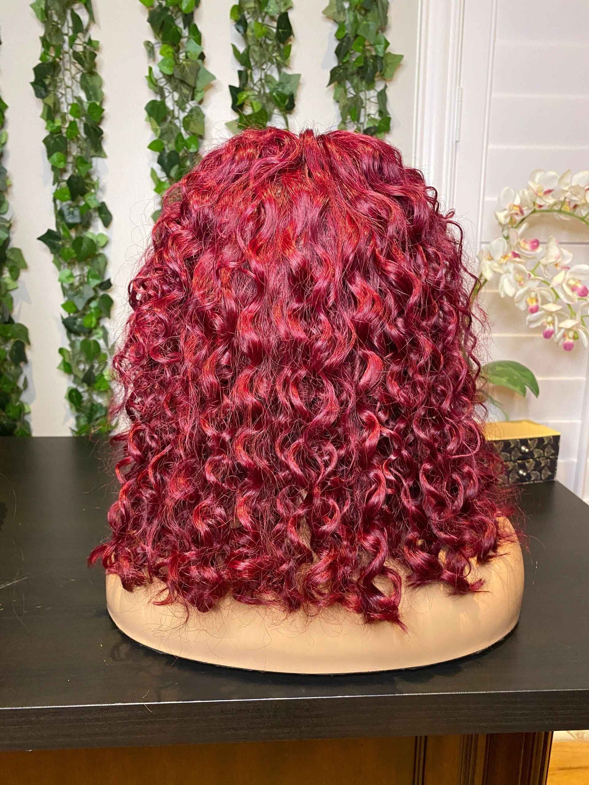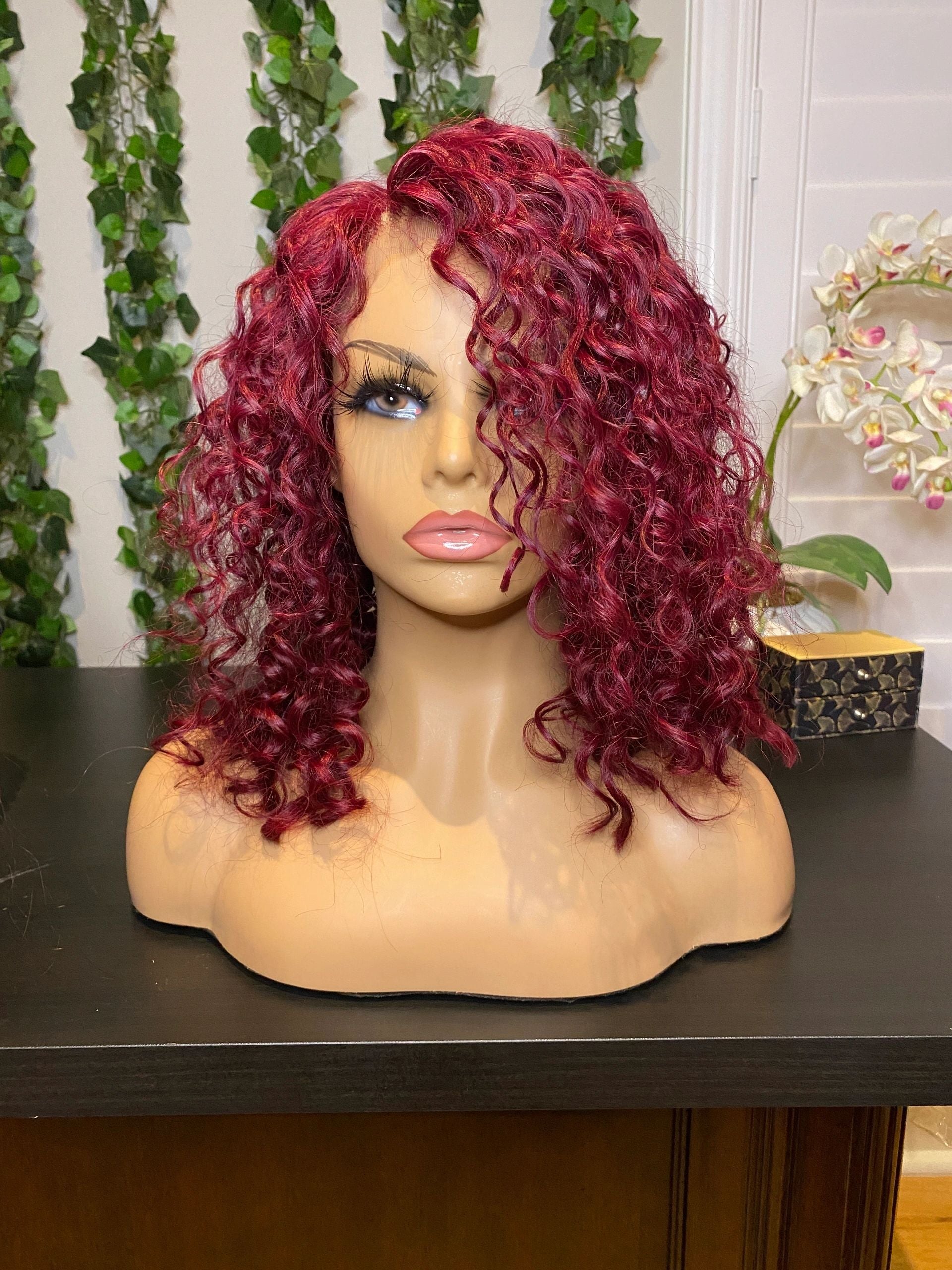 - 12” 5x5 transparent lace wand curl burgundy top quality virgin hair 180% density