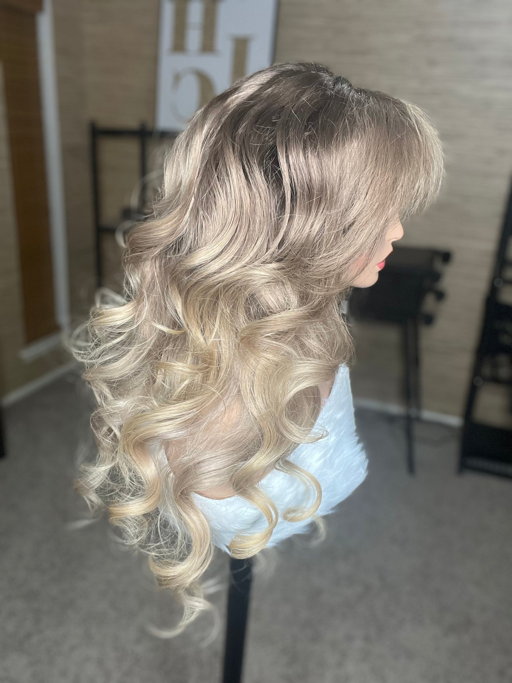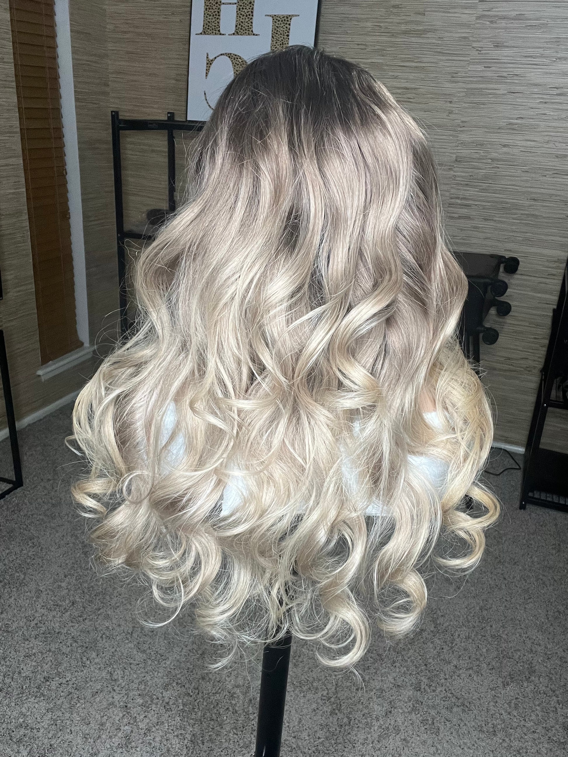 This is a one of a kind wig with endless versatility. Wear a half up, half down look or an updo since she’s full lace, you can do just about any style!