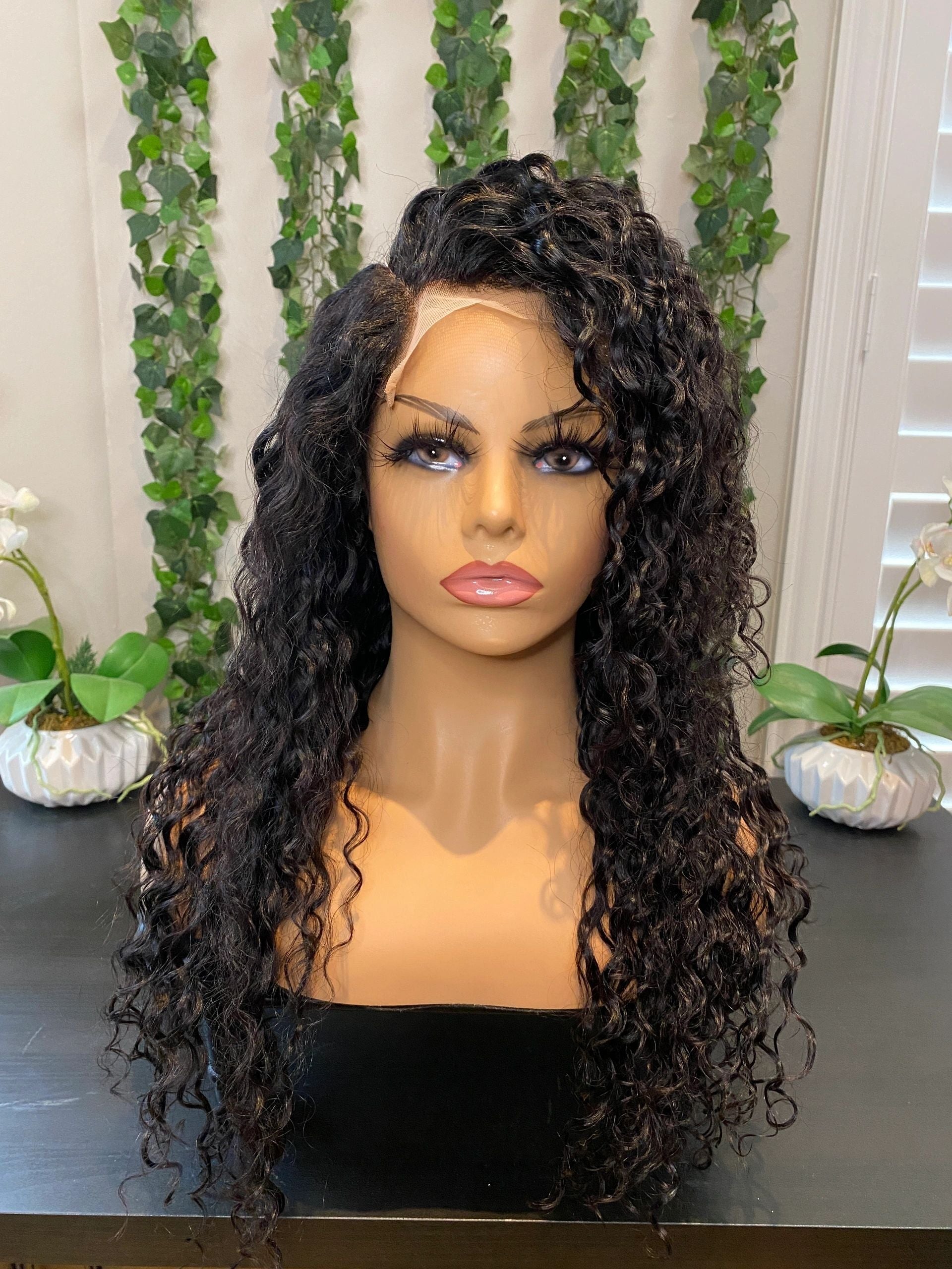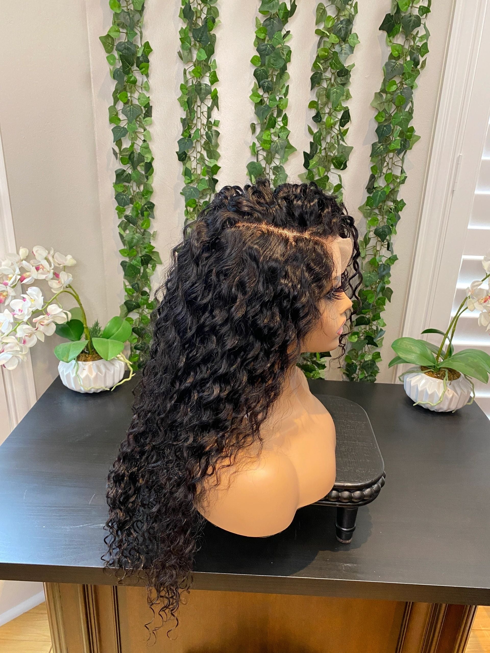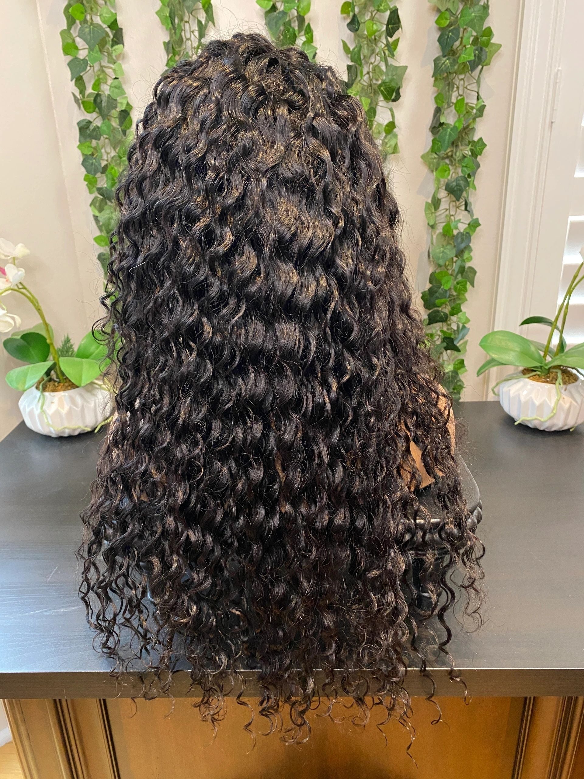 - 22” 5x5 transparent lace deep wave top quality virgin hair 1b 220% density