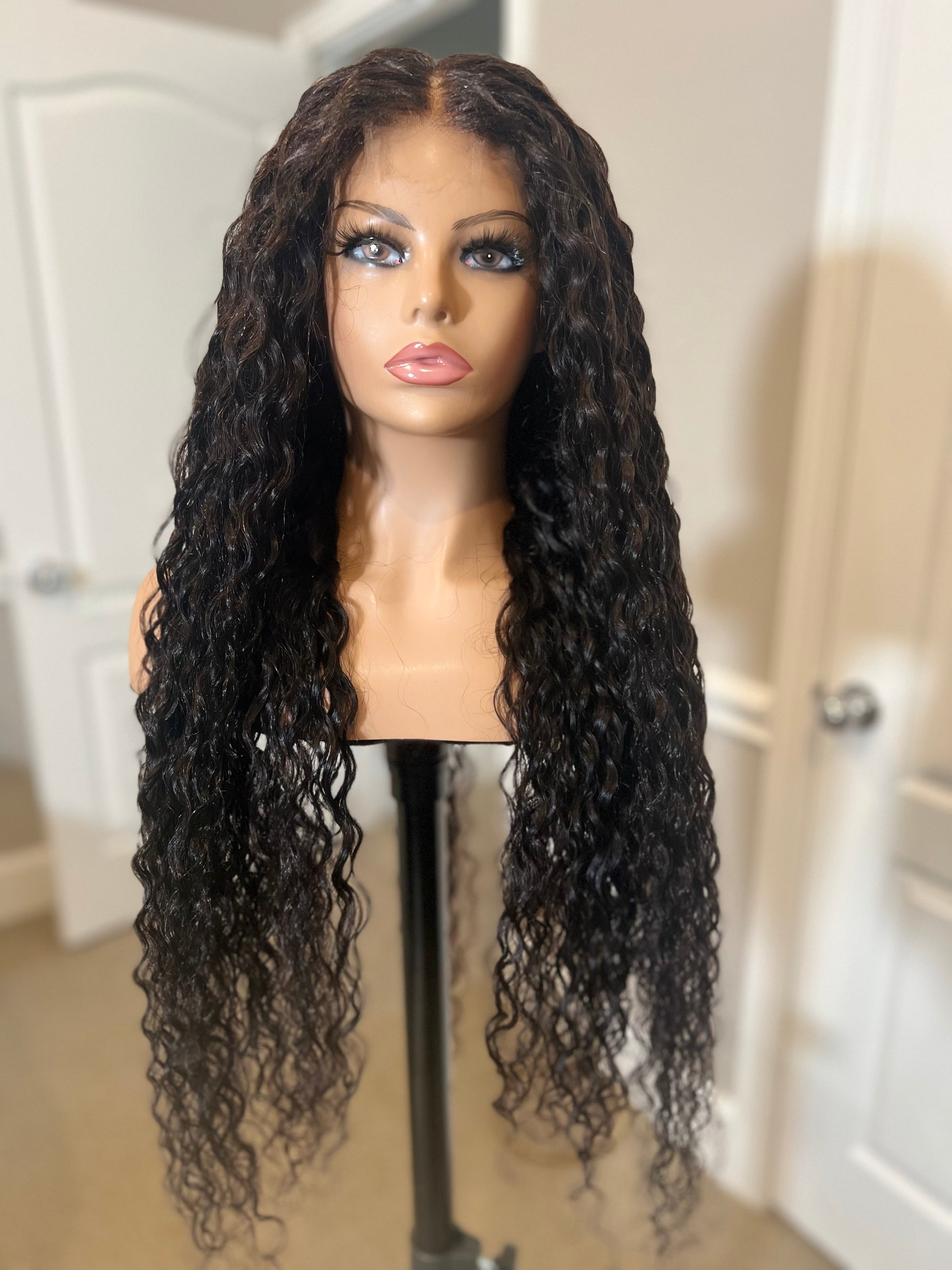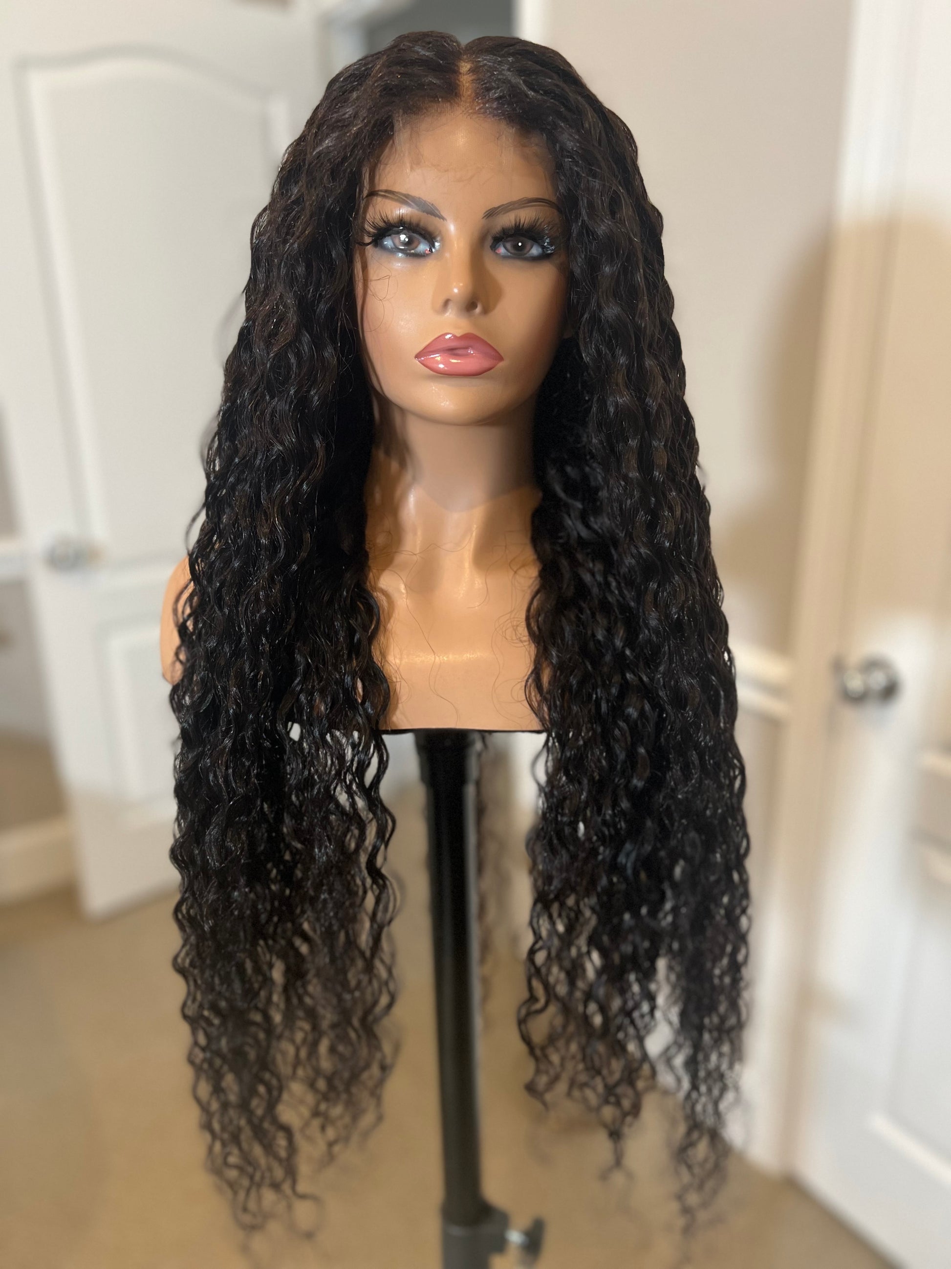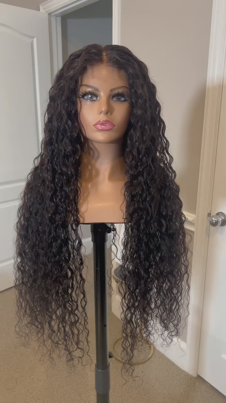 32” natural wavy virgin hair unit with 2x6” HD closure!